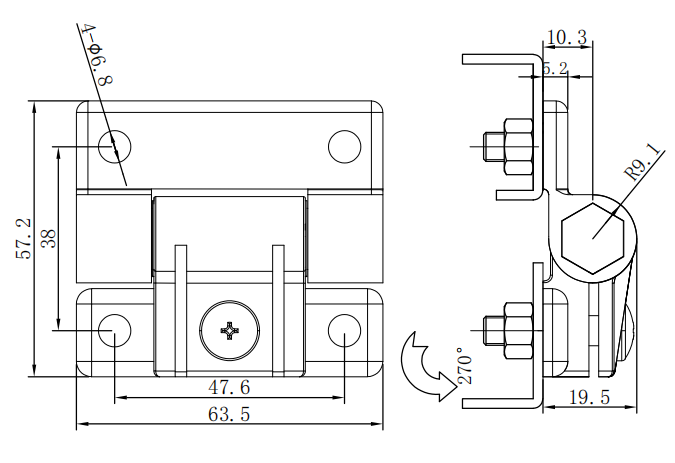 Adjustable Torque Hinge, symmetrical, medium size, acetal copolymer, natural, black,H1-2405-02