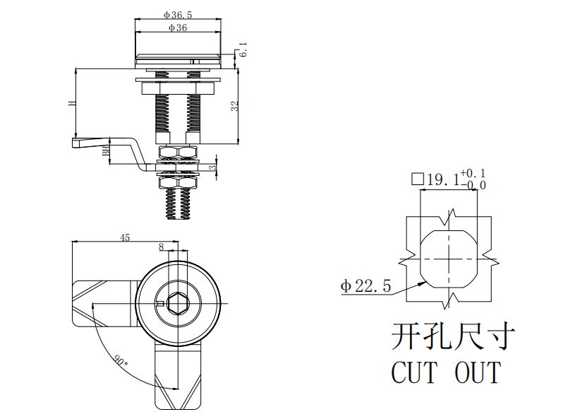 Compression Latch, Large Size, 8 mm Hex Recess, Stainless Steel,CY3-A16-02