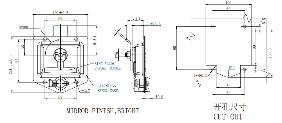 Lock body, handle:SUS304