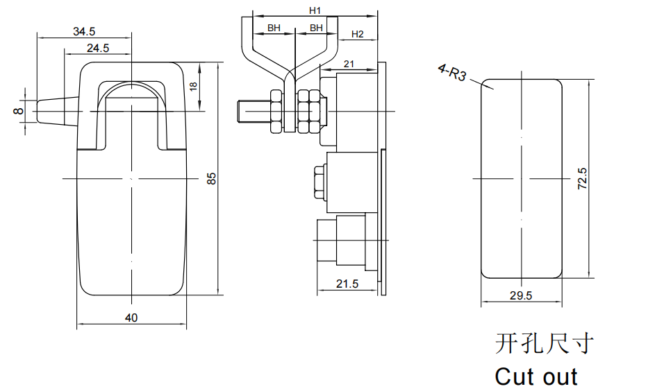 Compression Latches, Lift-Turn Series, Medium, Flush, Keyed, Zinc Alloy, Chrome plating, bright,MS726-1-10