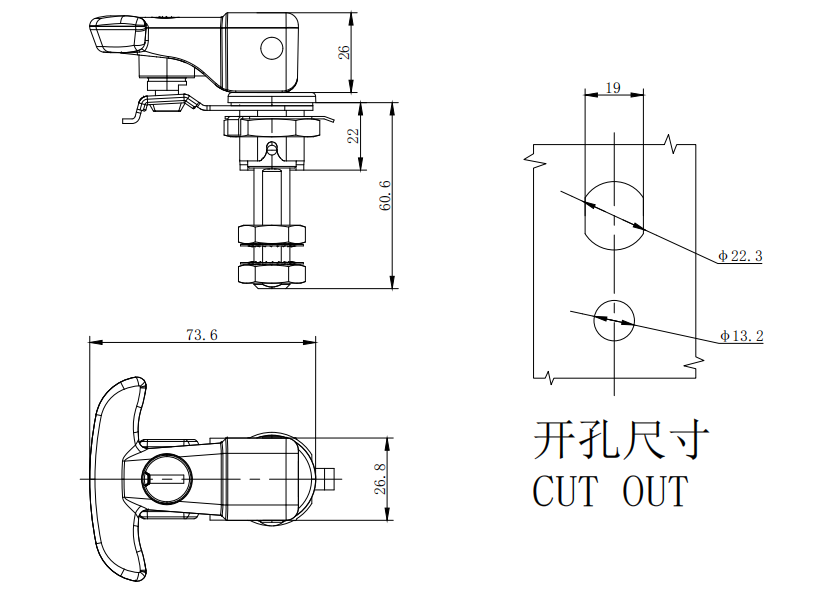 Compression type door lock, lift turn series, heavy duty size, key lock, steel, powder coated, black.A7880-1-10