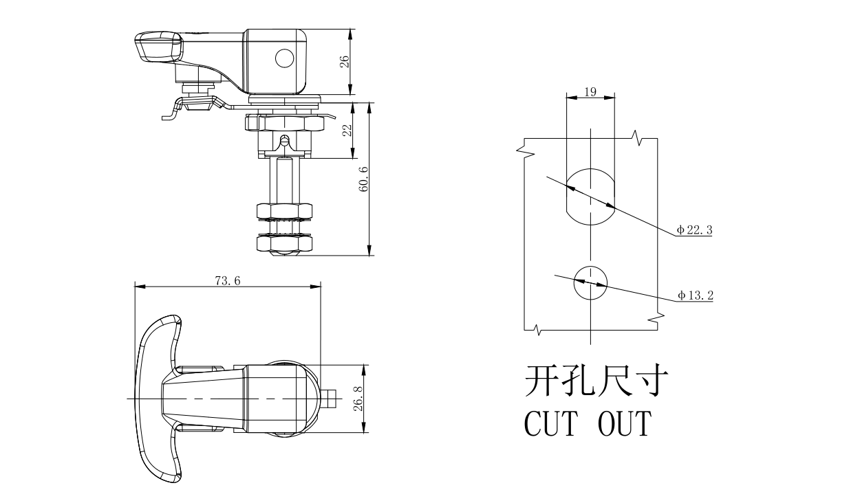 Compression type door lock, lift turn series, heavy duty size, No limit, steel, powder coated, black.A7880-2-10