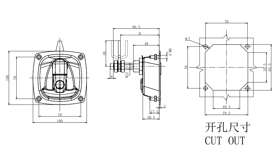 Compression type door lock, lift turn series, heavy duty size, standard housing, key lock, stainless steel,polishing,bright,A7881-1-A1