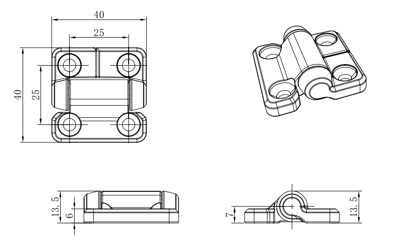 Home - Torque Hinge - Constant Torque Hinge, 40x40mm, M4 countersunk screws are installed,zinc alloy, powder coated, black,H1-2423-400-40