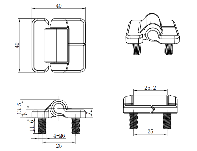 Constant torque hinge, 40x40mm, M4 stud installation,Zinc alloy, Electric galvanized, white,H1-2423-401-30