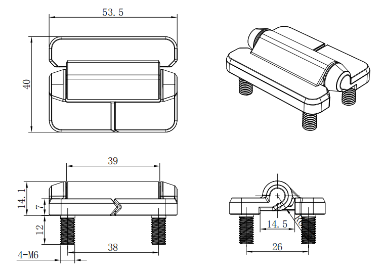 Home - Torque Hinge - Constant Torque Hinge, 50x40mm,M6 stud installation, zinc alloy, powder coated, black,H1-2421-541-40