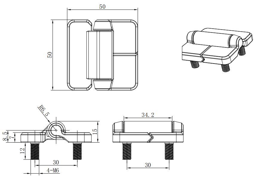 Home - Torque Hinge - Constant Torque Hinge, 50x50mm, M5 stud installation,zinc alloy, powder coated, black,H1-2423-501-40