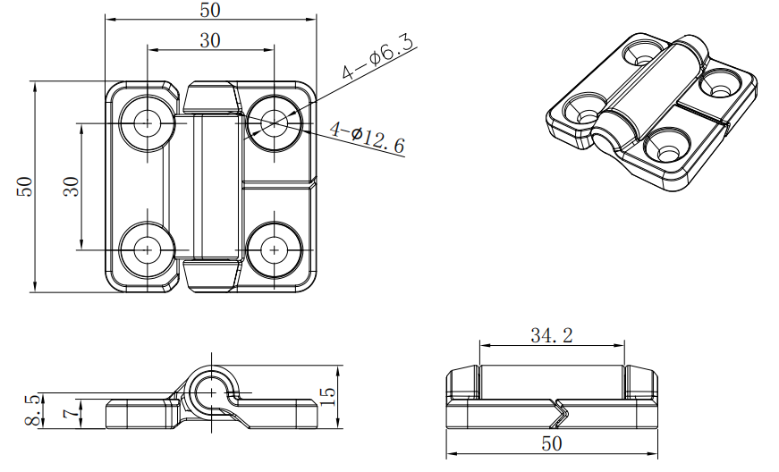 Home - Torque Hinge - Constant Torque Hinge, 50x50mm,M5 countersunk screws are installed, zinc alloy, powder coated, black,H1-2423-500-40
