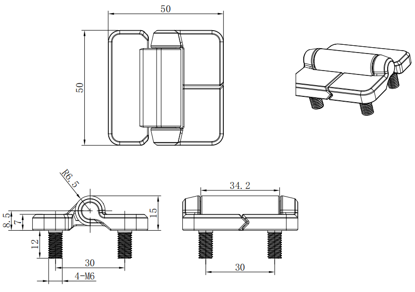 Home - Torque Hinge - Constant torque hinge, 50x50mm,M5 stud installation, Zinc alloy, Electric galvanized, white,H1-2423-501-30