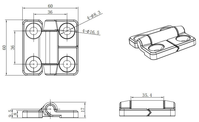 Constant torque hinge, 60x60mm, M6 countersunk screws are installed,Zinc alloy, Electric galvanized, white,H1-2423-600-30