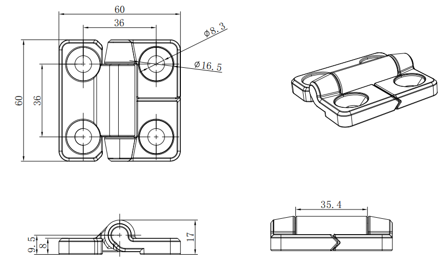 Home - Torque Hinge - Constant Torque Hinge, 60x60mm, M6 countersunk screws are installed,zinc alloy, powder coated, black,H1-2423-600-40