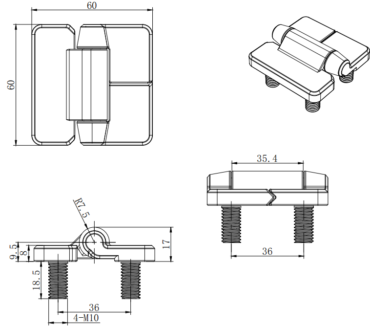 Home - Torque Hinge - Constant torque hinge, 60x60mm,M6 stud installation, Zinc alloy, Electric galvanized, white,H1-2423-601-30