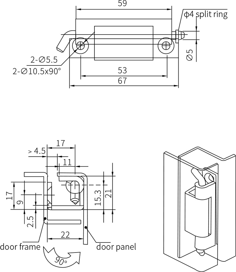 1.Material: Carbon steel or 304 stainless steel 2.Surface treatment: White zinc plated, stainless steel natural color 3. Structure description: 90 degrees can be opened