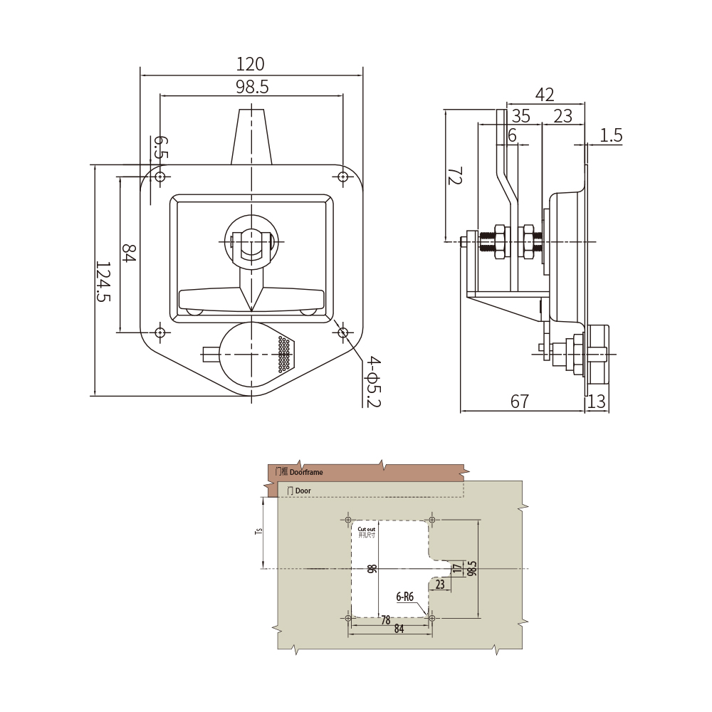 Home - Swing Handle Lock - Flush T-Handle Style, Self-Adjusting, No Restriction, Compression Latch, Stainless Steel, Electropolished, Bright,MS858