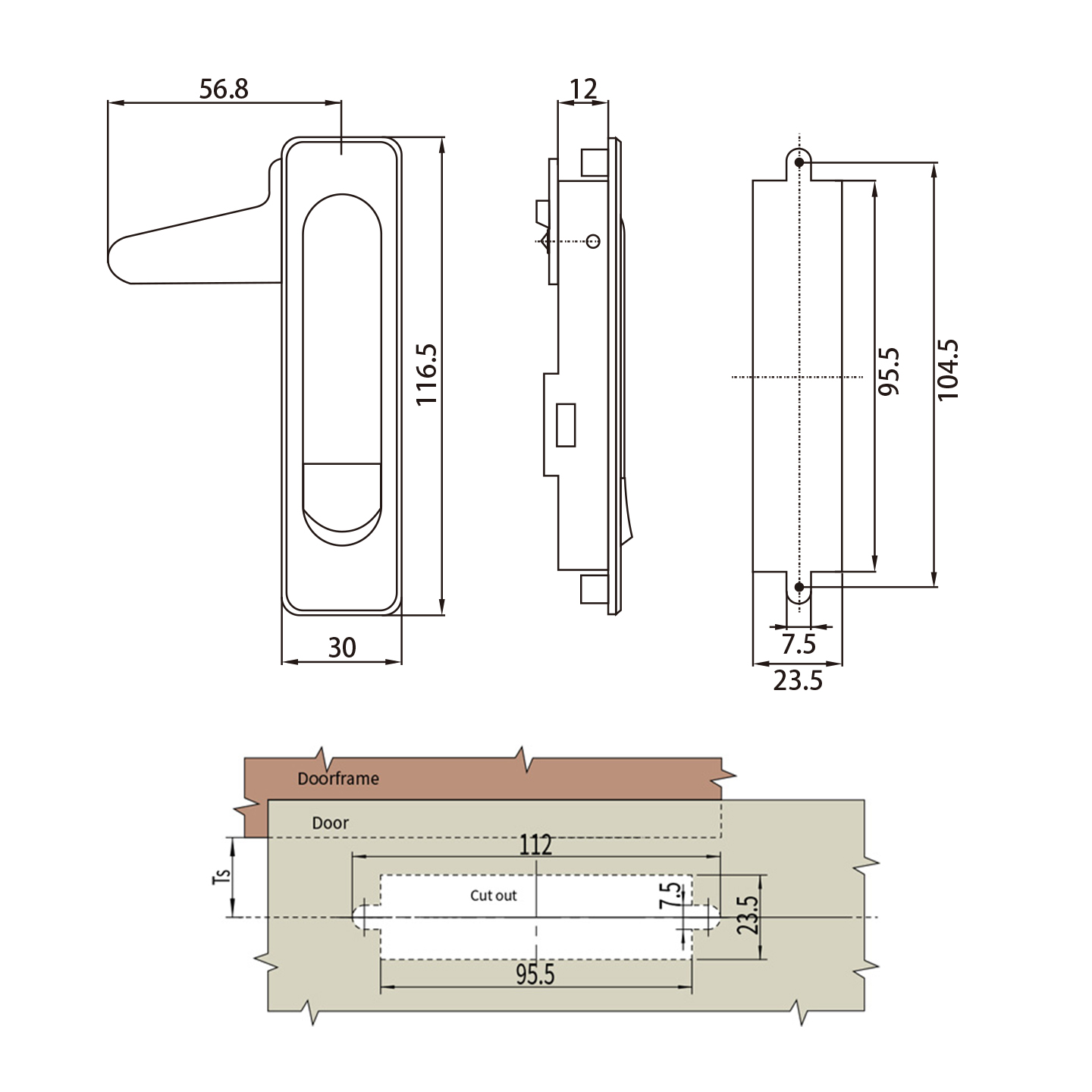 Industrial Zinc Alloy Single-Sided Lock, Non-Key, Panel Handle Lock for Distribution Box MS730