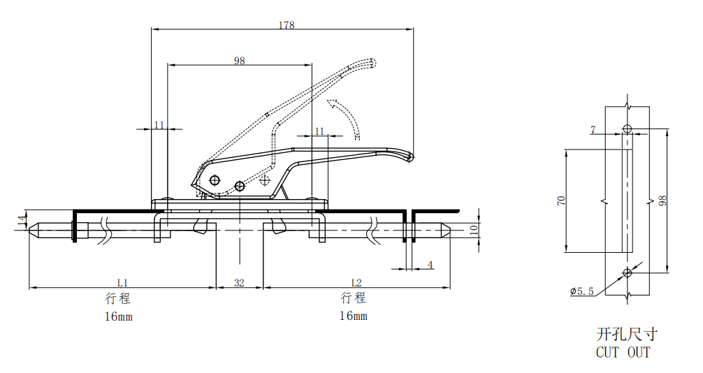 Multi-point lock, Lift handle, L handle, unlimited, Zinc alloy, Powder coated, black,B-1528