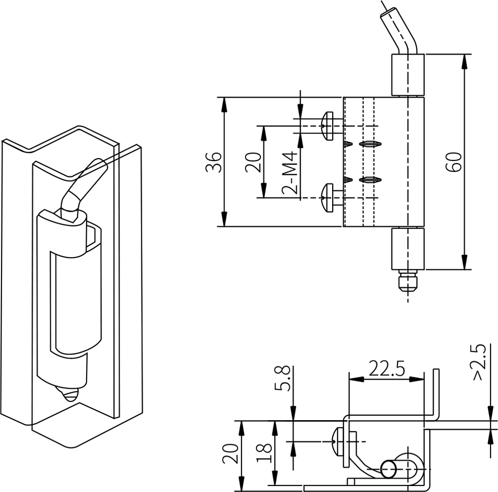 1.Material: Carbon steel, 304 stainless steel 2.Surface treatment: White zinc plated, stainless steel natural color 3.Structure description: Can be opened 120 degrees