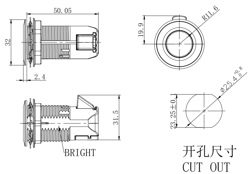 Flange, button, locking tongue: Zamak DIN