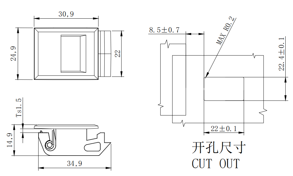 Push-to-Close Slide Latch, Miniature Size, 1.6mm (0.06in) Panel Thickness,ABS,Black DK728-1B