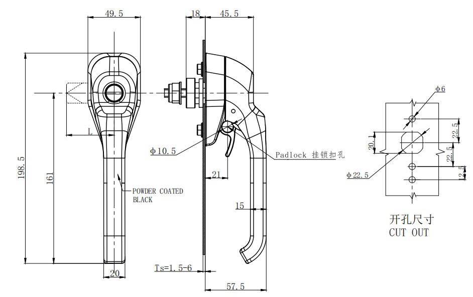 Lock body, handler:5#Zinc alloy or SUS304