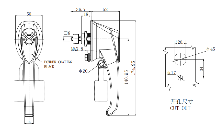 Quarter CAM latch, L-handle with padlock, 5mm wing, with CAM, zinc alloy, powder coating, black,B-1520-015-10