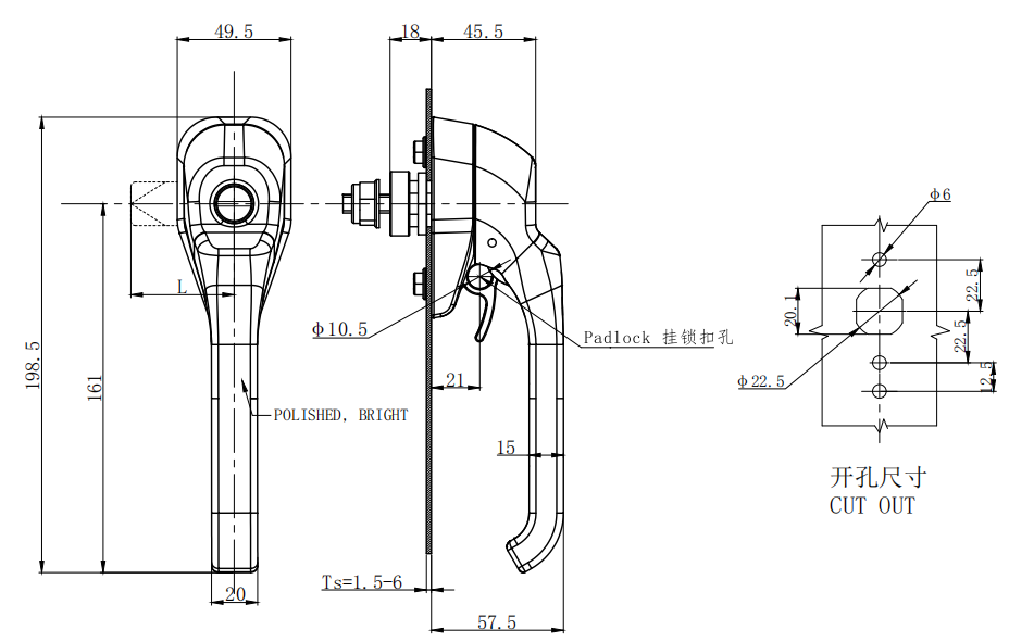 Lock body, handler:5#Zinc alloy or SUS304