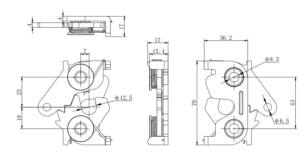 Home - Push To Close Latch - Rotary push-close latch, left, medium size, double stage, bottom drive, steel, galvanized, bright,DK742-3B