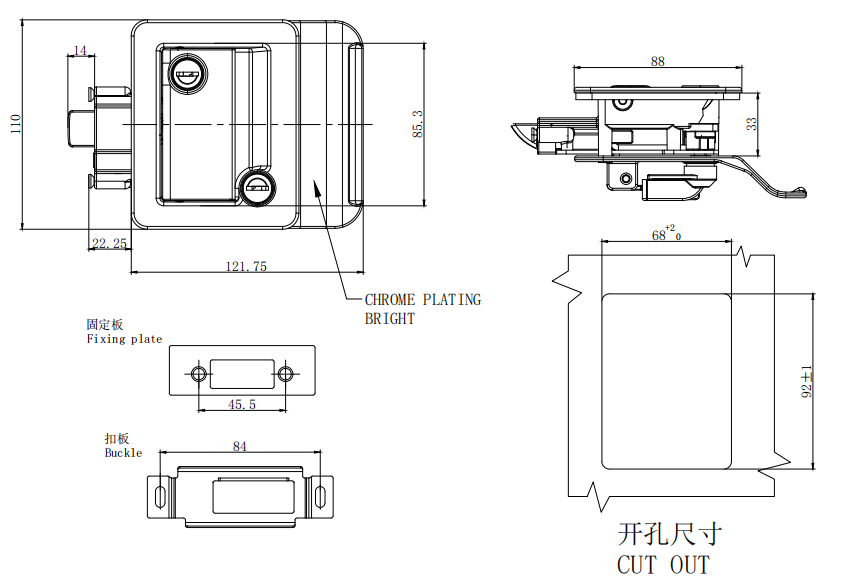 Rv Door Lock, Impact Door, Key Lock, Zinc alloy, Chrome plating, Bright A9001-1