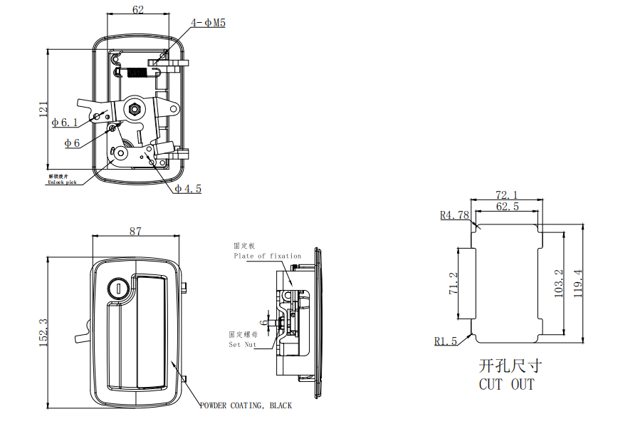 Rv Door lock, Impact door, Key lock, Zinc alloy, powder coating, black,B-1612