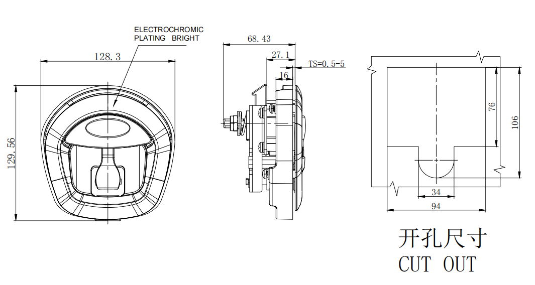 Rv Door Lock, Impact Door, Whale Tail Handle, Key Lock, Zinc Alloy, Chrome Plating, Bright A7890-2
