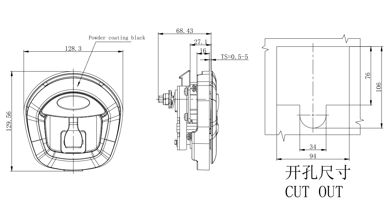 Rv Door Lock, Impact Door, Whale Tail Handle, Key Lock, Zinc Alloy, powder coating, black,A7891-2