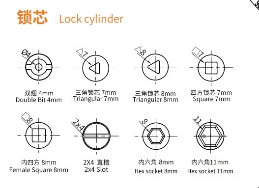 Quarter turn lock IP65 Stainless steel,Short body 12mm Triangular 8mm/Square 7mm /Double bit 4mm D1-1400