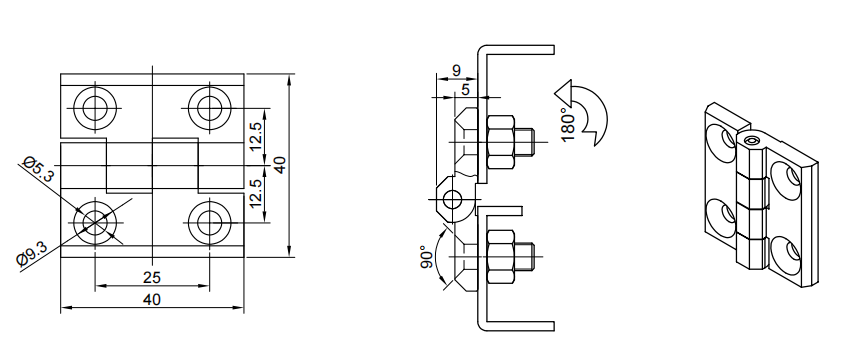 Home - Free Swing Hinges - Surface Fixed Hinge, 40x40mm, M4 countersunk screw mount, Stainless Steel, brushed polished, bright,H1-2101-400-A1