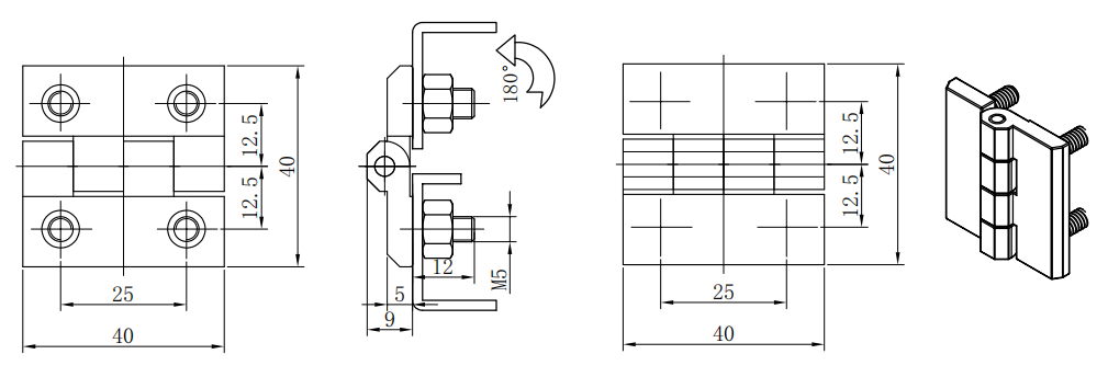 Surface Fixed Hinge, 40x40mm, M4 stud mount, Stainless steel, mirror polished, bright,H1-2101-401-A1
