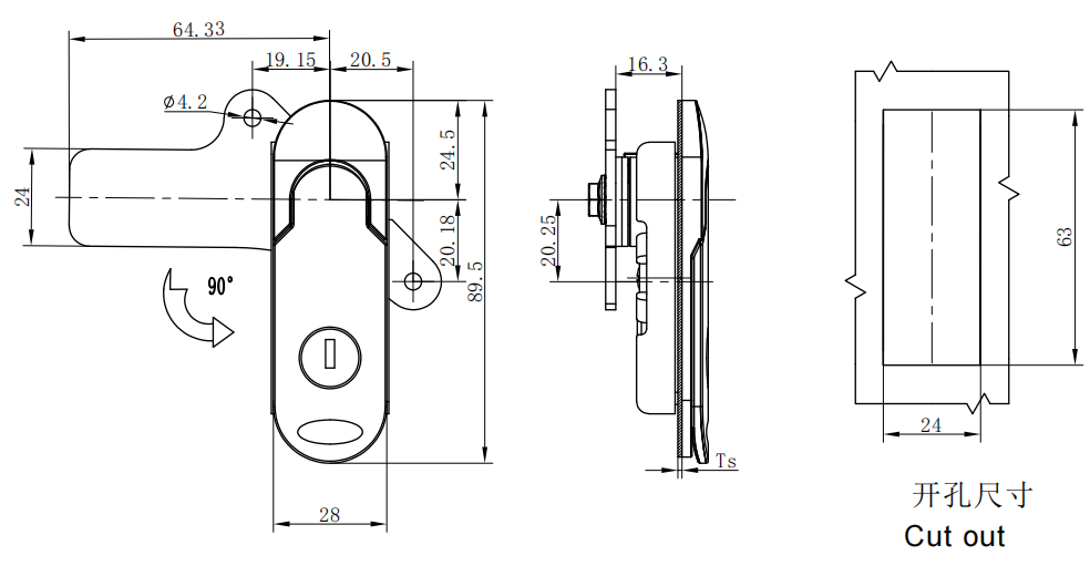 Lock body, handle :Zinc alloy or Stainless steel 304