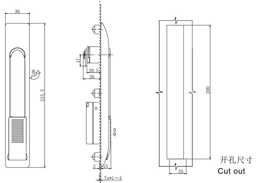 handle:Zinc Alloy Powder Coated Black