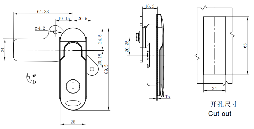 Lock body, handle :Zinc alloy or Stainless steel 304