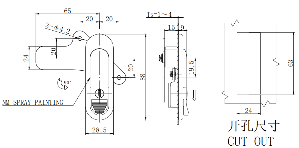 Swingl handle lock, K200 key lock, left and right universal, swivel handle open, zinc alloy, spray paint, silver,AB303-30